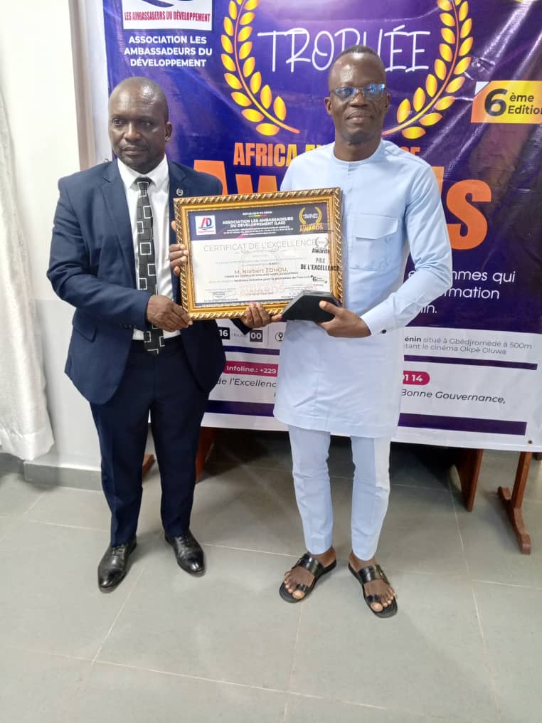 La distinction des Trophées Africa Excellence Awards de l’Association « Les Ambassadeurs du Développement » (LAD) est une initiative qui cadre parfaitement avec la vision du gouvernement, celle qui promeut l’innovation, l’excellence, la bonne gouvernance et qui met un point d’honneur sur les parcours les sacrifices et la magnanimité des vaillants hommes qui participent à la transformation et au développement du Bénin. Dans cette logique, la cérémonie de distinction qui vient finaliser le processus, vise à reconnaître et à récompenser chaque année les meilleures Écoles publiques et privées, établissements d’enseignement Secondaire, technique et de la Formation professionnelle publique et privée aux examens du CEP, BEPC, CAP, BAC, DTI, en leur décernant un « Prix Spécial », un « Prix d’Innovation », un « Prix d’Excellence » ou un « Prix d’Honneur ». C’est à cette occasion que Dr Amour Mathias Ahonmadégbé, directeur départementale des enseignements secondaires techniques et de la formation professionnelle de l’Atlantique a été honoré pour son parcours et ses nombreuses performances dans le secteur éducatif à la tête du département de l’Atlantique.